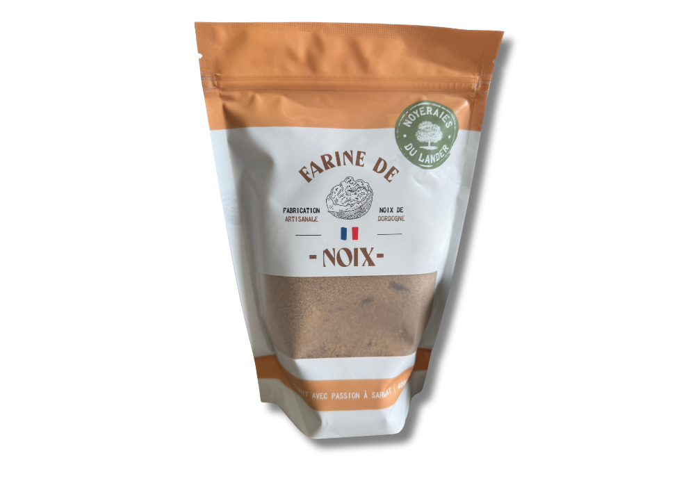 La farine de noix des Noyeraies du Lander est obtenue à partir des tourteaux de noix, résidus solides issus de la pression à froid pour l’extraction de l’huile.
